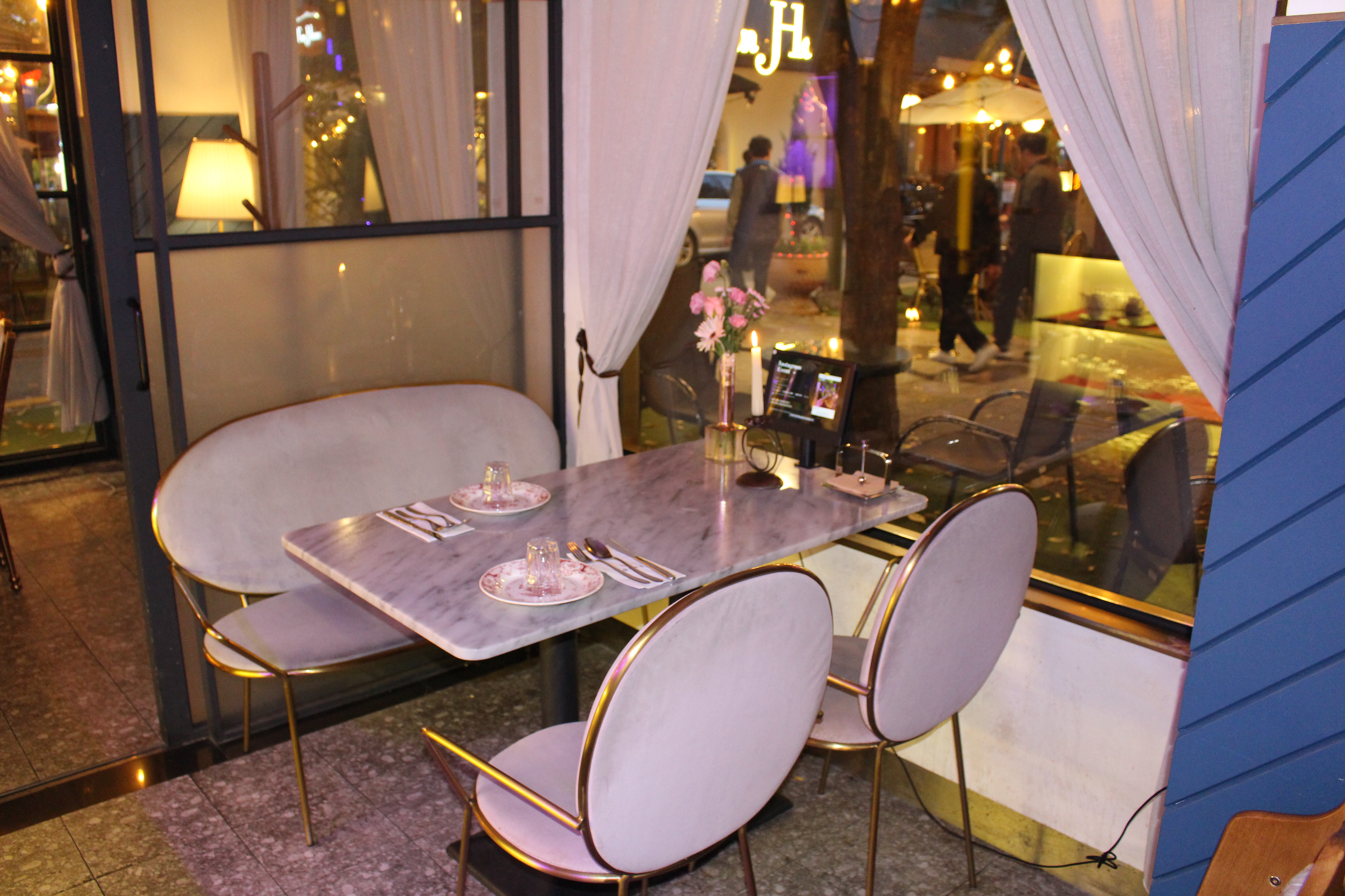 이렇게 이쁜 테이블에서 맛있는 샐러드를 주문하고 와인을 마시면 분위기에 취하고 와인에 즐깅수 있는 그런 레스토랑 《문스》 입니다.