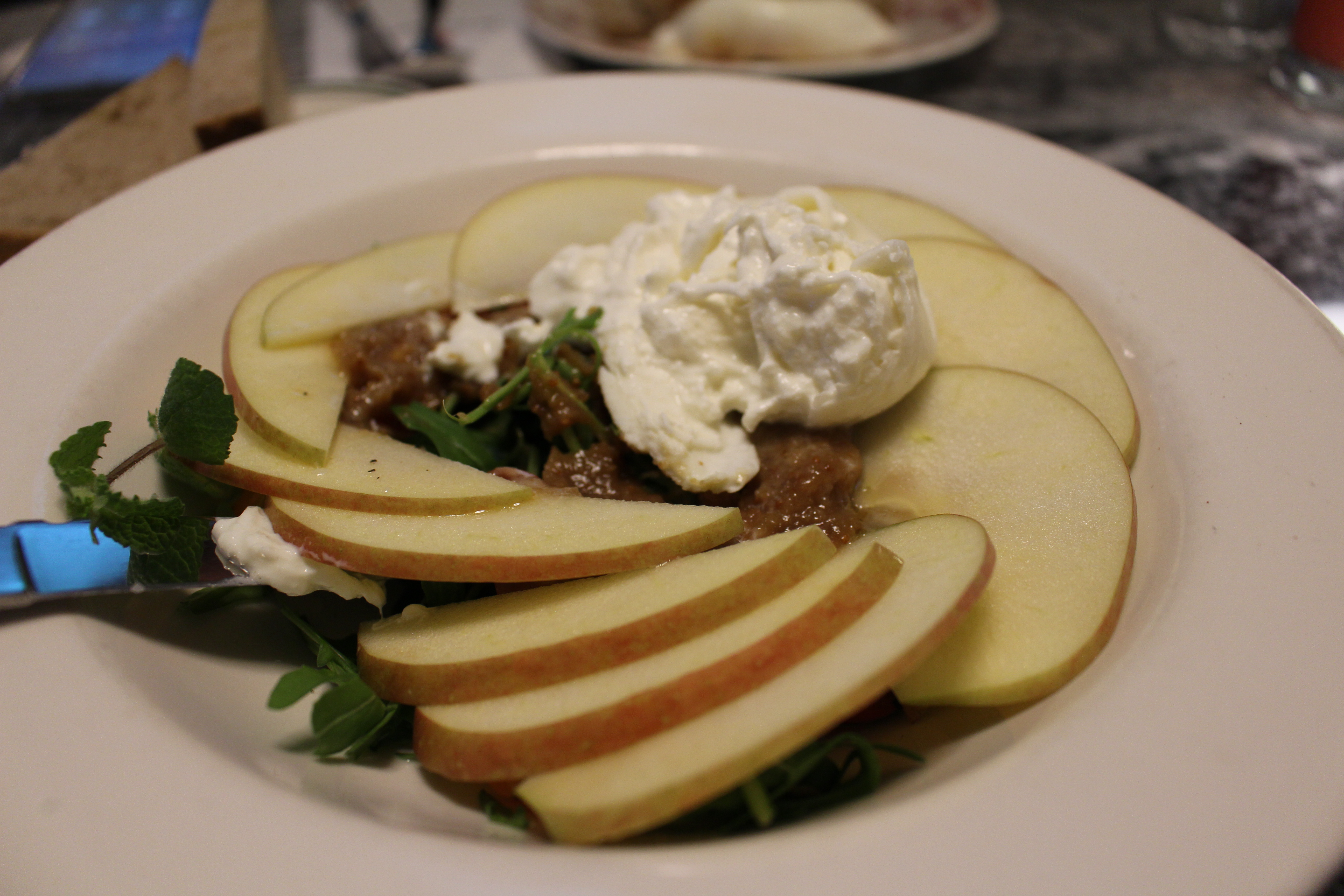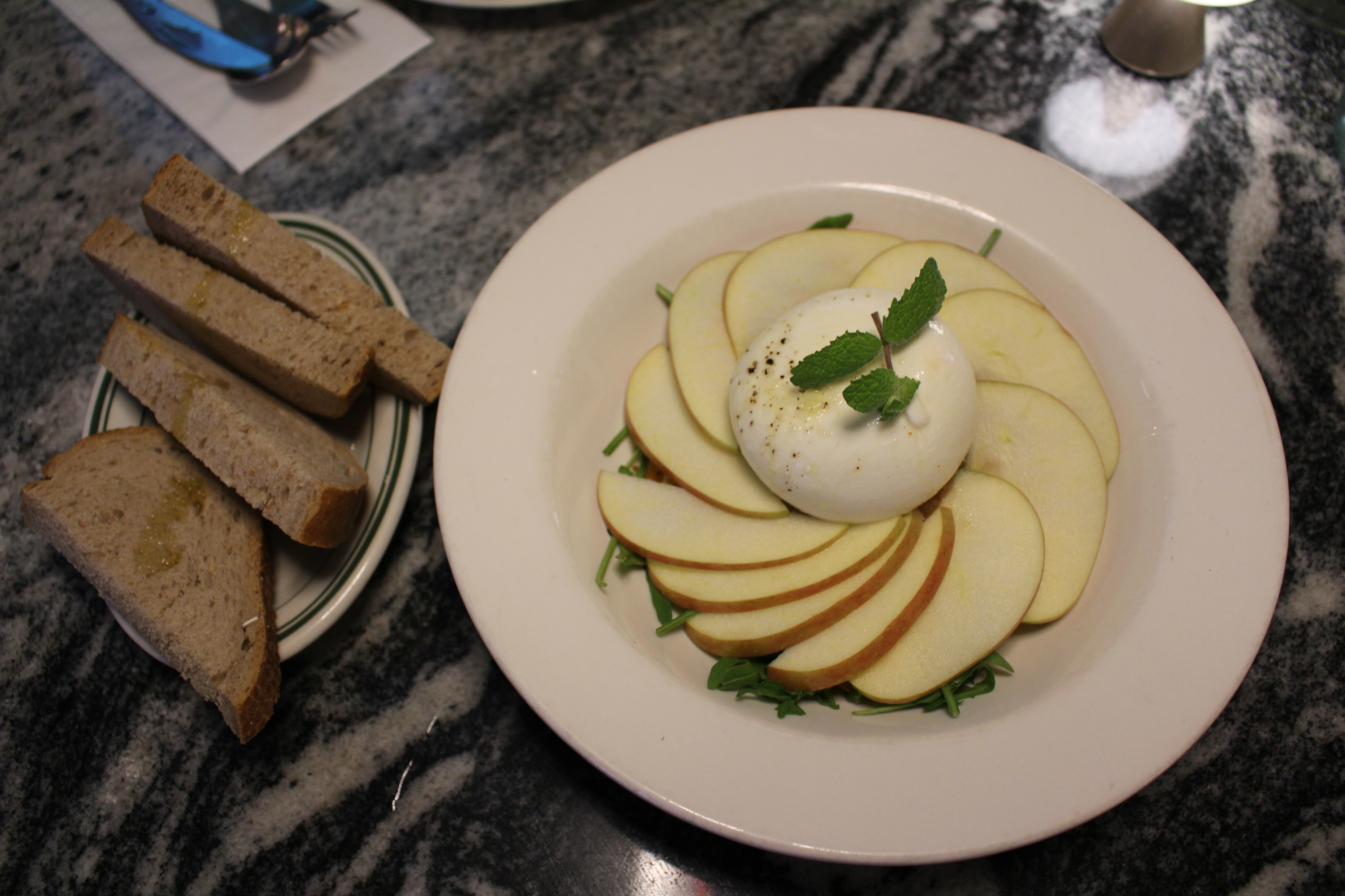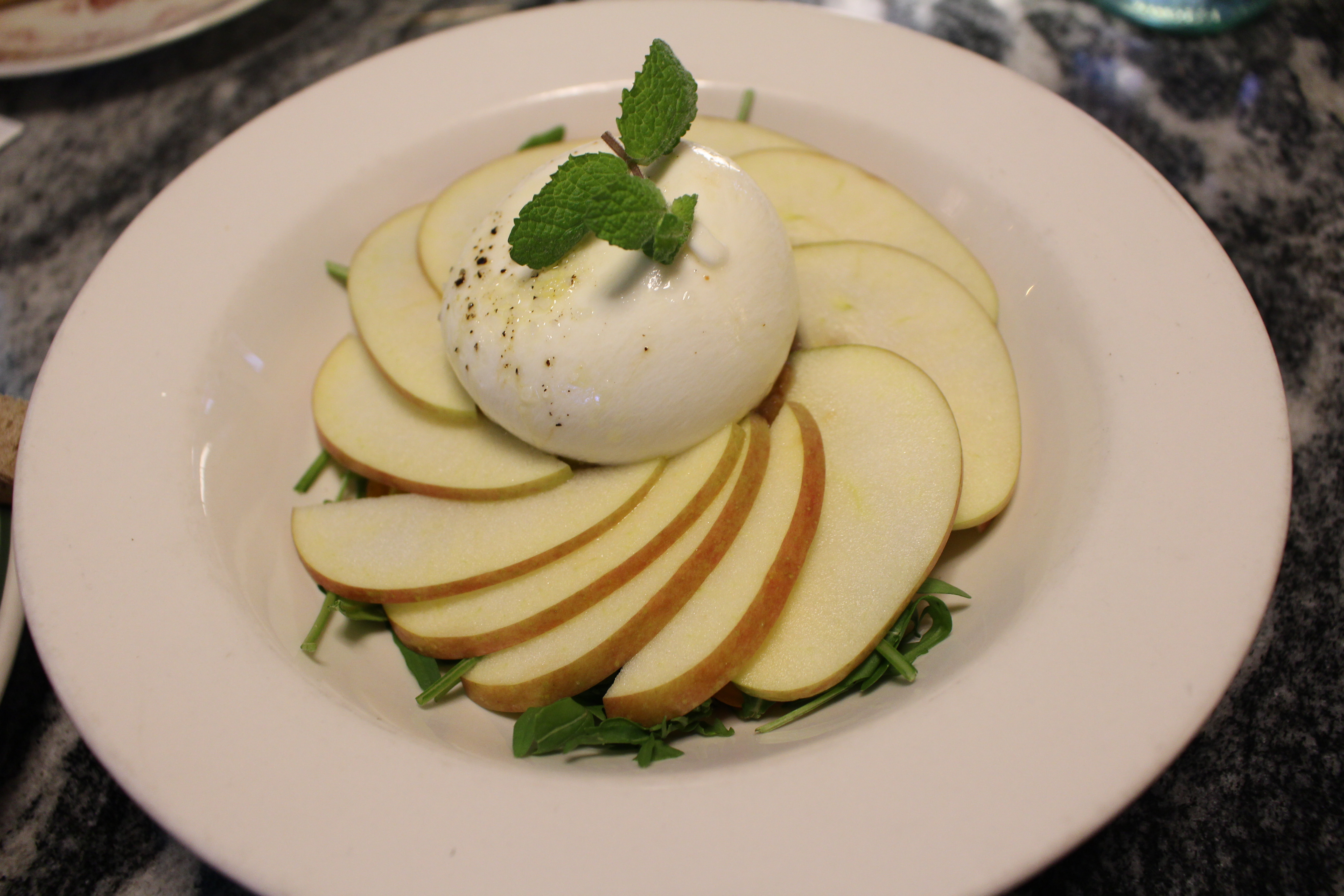 부라타 샐러드가 나왔는데 뭐니 뭐니 해도 부라타의 비주얼이 압권입니다. 이대로 놓고 보기만 해도 배가 부를 것 같은 그런 이미지입니다.