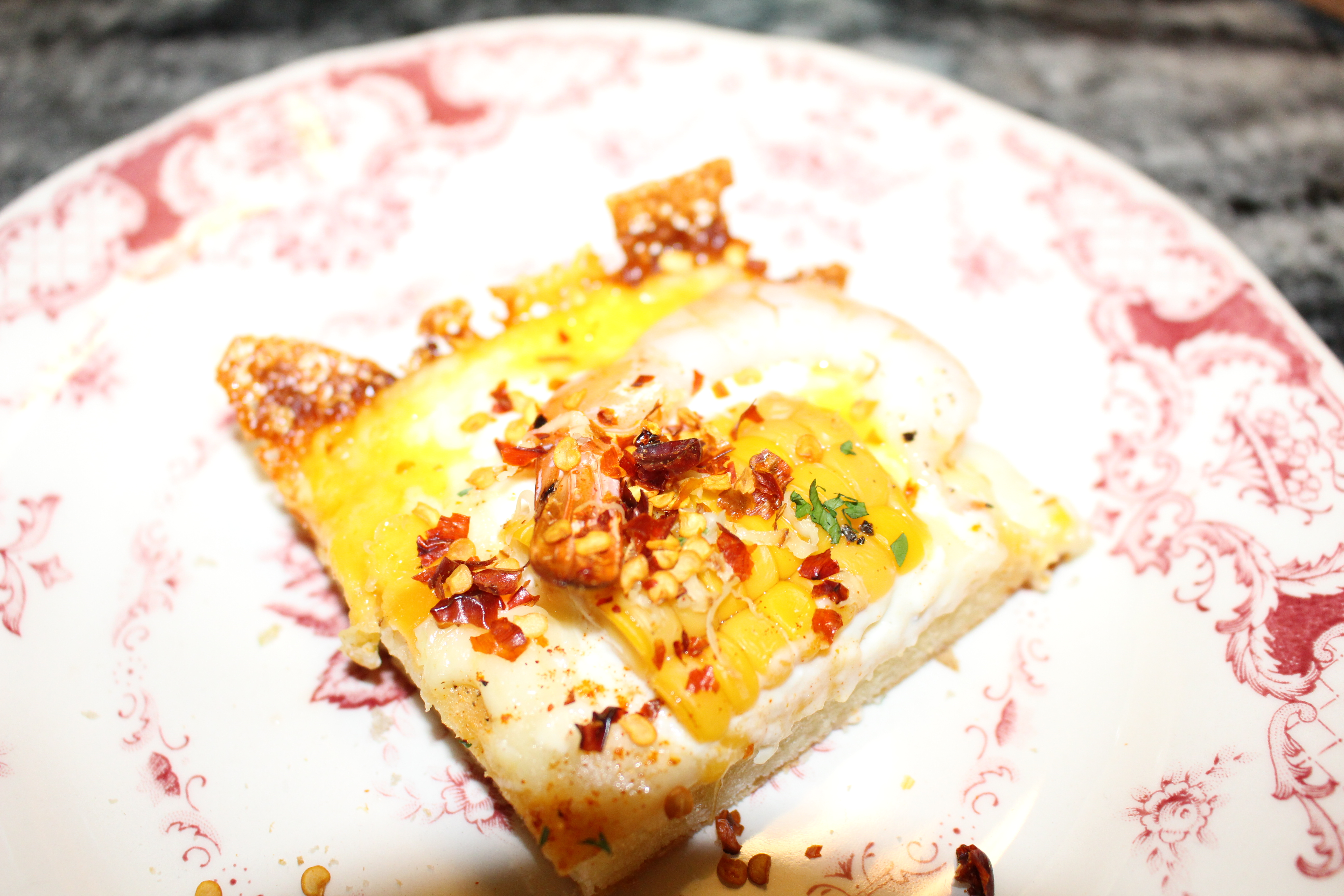 이렇게 한 조각씩 먹다 보니 어느새 접시 바닥이 나옵니다. 짭조름한 치즈와 통통한 쉬림프의 식감이 어우러져서 너무 맛있는 피자의 세계를 경험했네요~