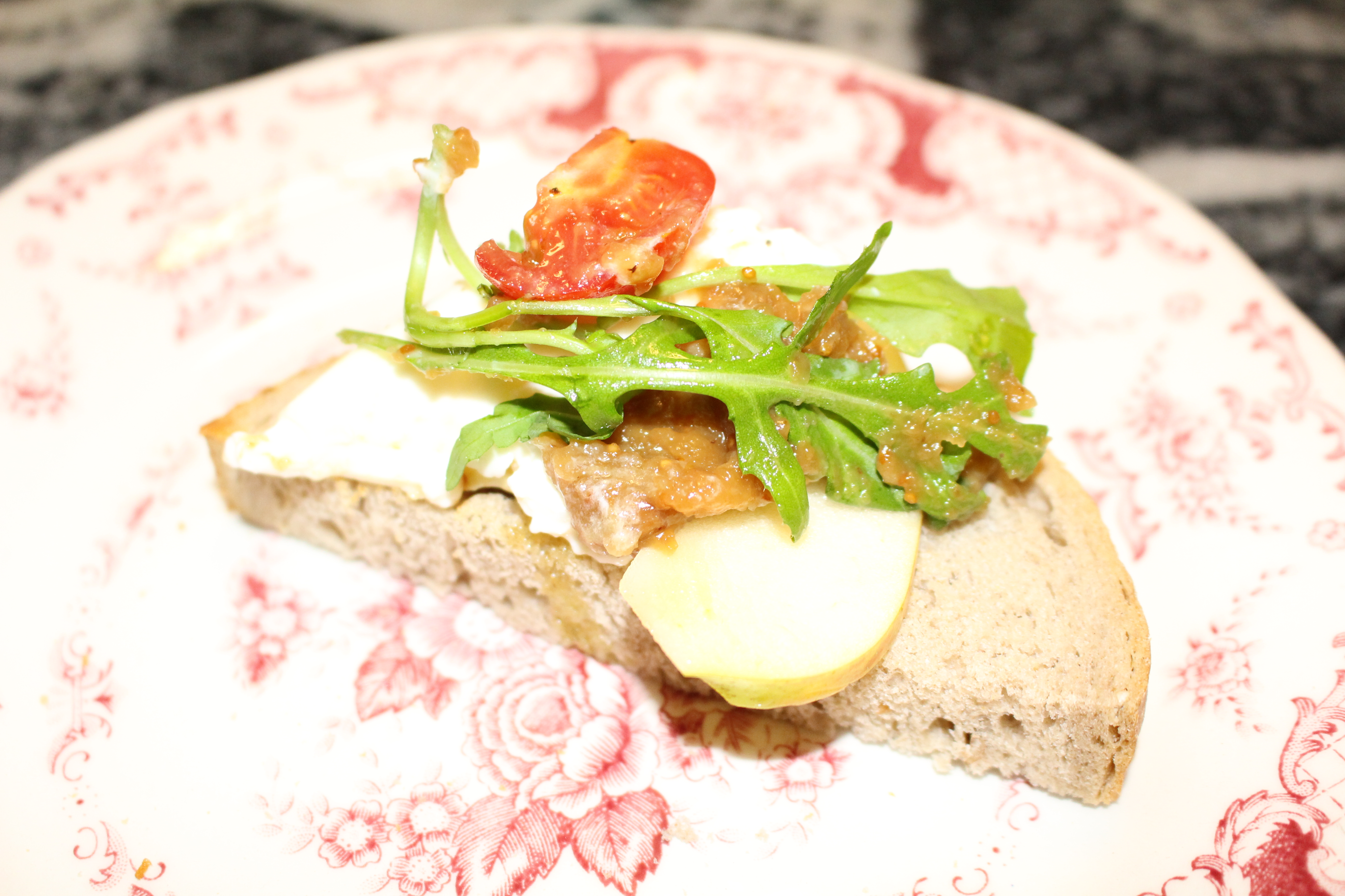 나만의 오픈 샌드위치를 만들어 봅니다. 고소한 빵 위에 아삭한 사과를 얹고 달큼한 소스를 곁들이고 채소를 얹으면 완성이 되는데 이 맛은 정말 맛있네요~