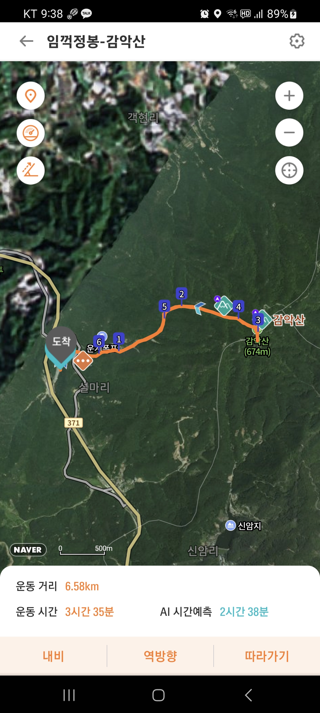 이곳에서 등산로가 갈라지는 삼거리입니다. 우리는 감악산 정상방향으로 등산을 하기로 결정하고 등산을 계속합니다.