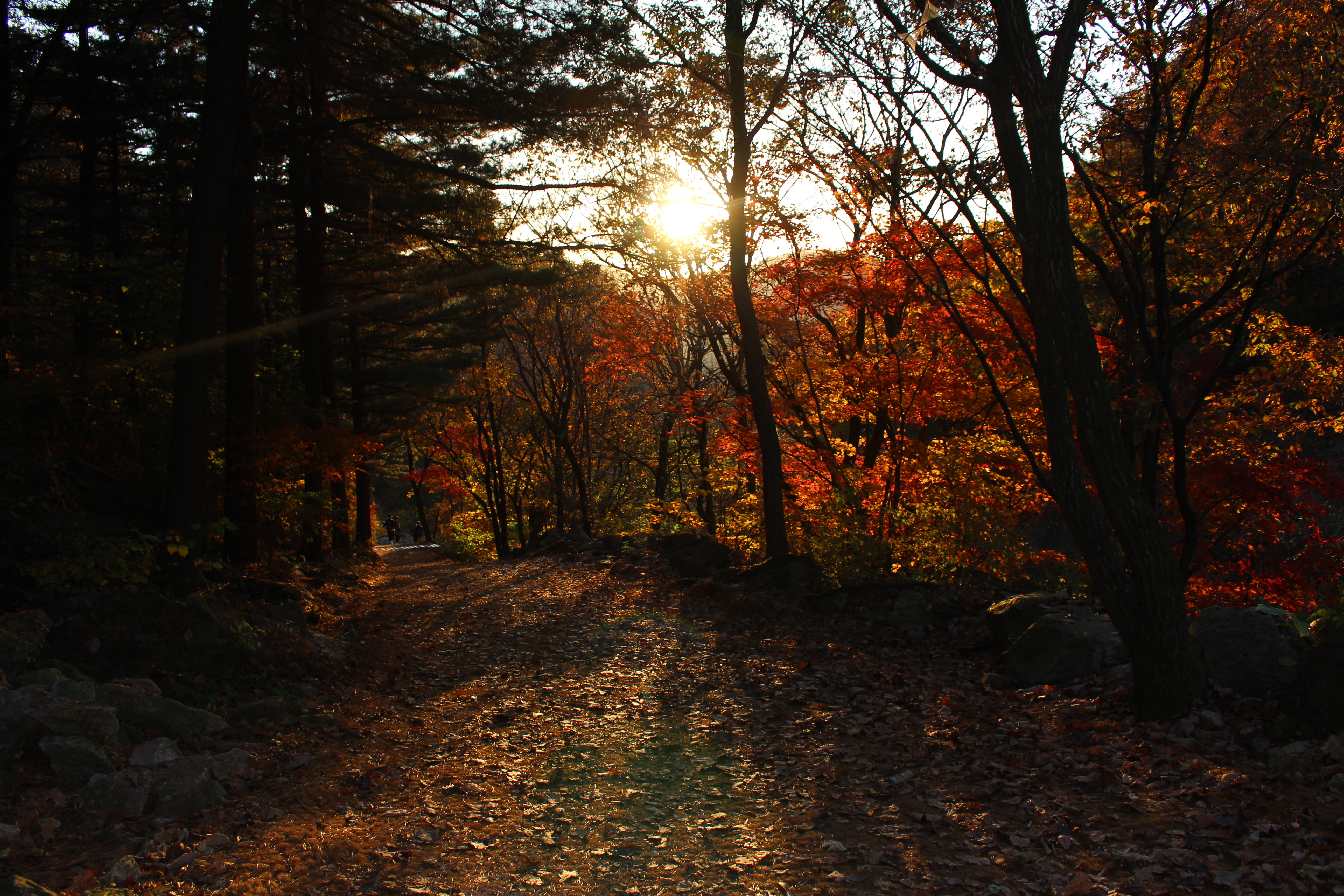 하산길에 단풍이 석양빛에 더 멋지게 보입니다.